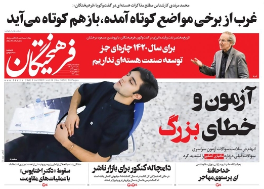 صفحه نخست روزنامه‌های کشور - شنبه ۱۱ تیر ۱۴۰۱