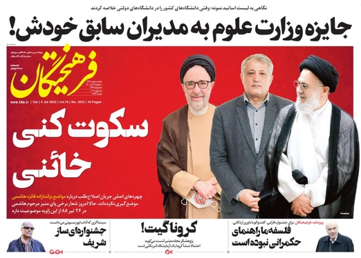 صفحه نخست روزنامه‌های کشور - سه‌شنبه ۱۴ تیر ۱۴۰۱