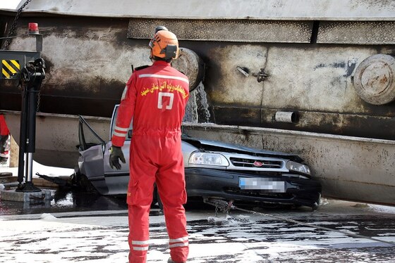 وی ادامه داد: نیروهای امدادی به محض حضور در محل مشاهده کردند، تانکر حامل ۳۰ هزار لیتر سوخت گازوئیل بدلیل نامعلومی بر روی یک سواری پراید واژگون شده که در نتیجه راننده خودرو پراید در دم جان باخته و راننده خودرو تریلی نیز بشدت مجروح شده بود.
