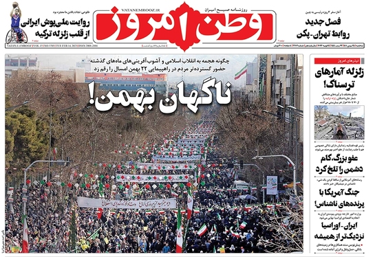 صفحه نخست روزنامه‌های کشور - سه‌شنبه ۲۵ بهمن ۱۴۰۱