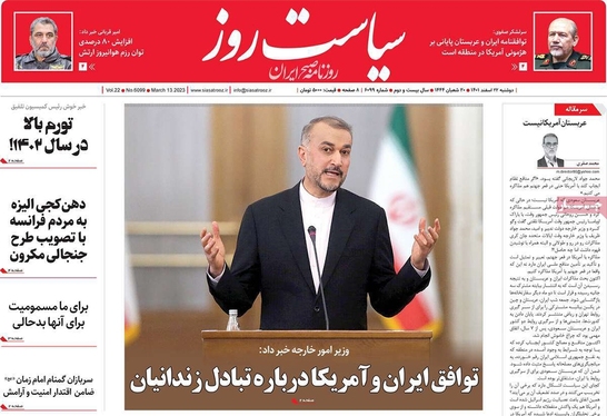 صفحه نخست روزنامه‌های کشور - دوشنبه ۲۲ اسفند ۱۴۰۱
