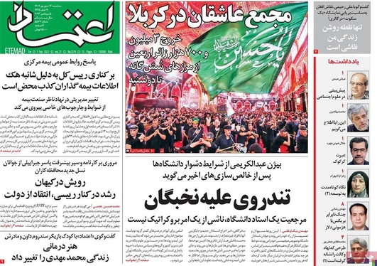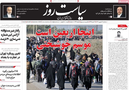 صفحه نخست روزنامه‌های کشور - سه‌شنبه ۱۴ شهریور ۱۴۰۲