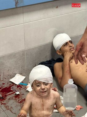 کودکان زخمی پس از بمباران بیمارستان المعمدانی
