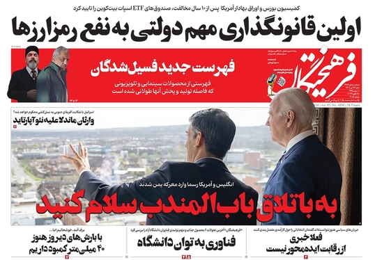 صفحه نخست روزنامه‌های کشور - شنبه ۲۳ دی ۱۴۰۲