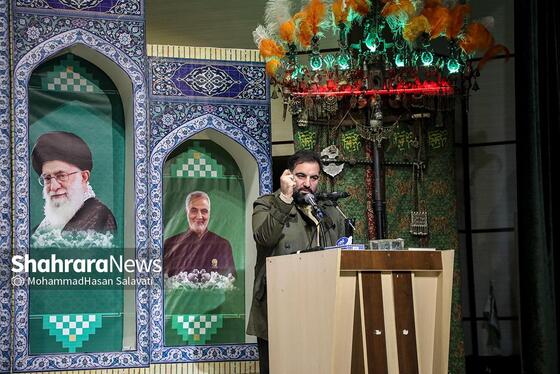 در ابتدای این مراسم، حجت الاسلام «هادی صاحبقرانی» مدیر کل تبلیغات اسلامی خراسان رضوی با بیان این که بنا بر آن داریم جریان هیئت داری در شهر امام رضا (ع) بتواند رشد ارتقا پیدا کند، خاطرنشان کرد: دوران طلایی جریان دینی، دوران ظهور منجی عالم بشریت است. حرکت تاریخی بشر اینگونه است و مدار آن انسانهای بزرگی هستند که برای تحقق حق با عدل قیام کردند و در مواجهه با جریان کفر و نفاق، جان و مال و هستی خود را فدا کردند تا جامعه بشری را به سرمنزل مقصود و هدف نهایی، یعنی حکومت انسان کامل بر تمام عالم برسانند.