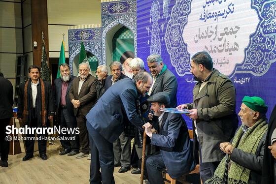 به گزارش شهرآرانیوز، مراسم تجلیل، تکریم و معارفه جمعی از خادمان هیئات مذهبی مشهد، امشب (۲۷ دیماه) در اداره کل تبلیغات اسلامی خراسان رضوی برگزار شد.