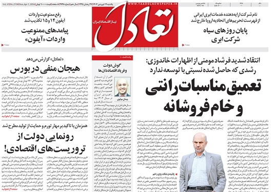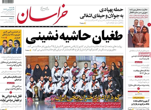 صفحه نخست روزنامه‌های کشور - یکشنبه ۱۹ فروردین۱۴۰۳