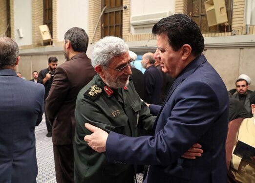 عکسی از فرزند شهید امیرعبداللهیان در کنار علی باقری در مراسم بزرگداشت شهید رییسی و همراهانش با حضور رهبر انقلاب