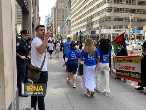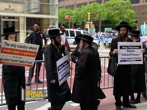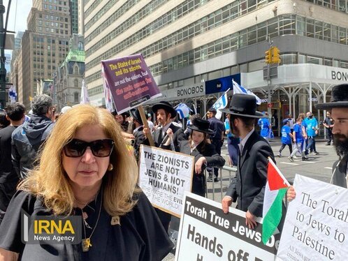 یهودیان ضد صهیونیسم در حالیکه طرفداران اسرائیل در خیابان های منهتن نیویورک برای سالگرد ایجاد این رژیم مراسم جشن همگانی برگزار کرده بودند، تجمع کردند تا به آنها جنایات این رژیم علیه مردم مظلوم غزه را یادآوری کنند.
