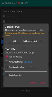با نصب این نرم افزار یک پنل کنترلی کنار صفحه گوشی شما به وجود می‌آید که با استفاده از آن، می‌توانید ۴۰ کلیک در هر میلی ثانیه داشته باشید.