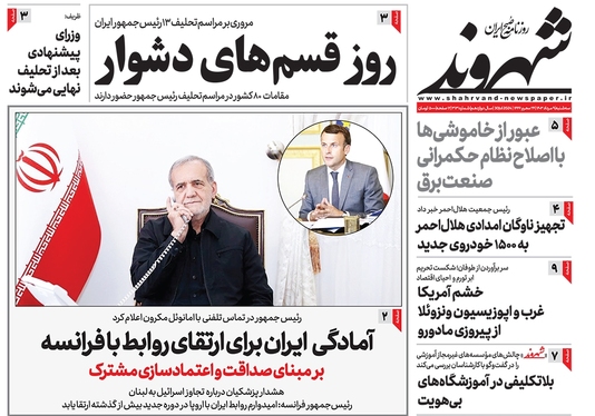 صفحه نخست روزنامه‌های کشور - سه‌شنبه ۹ مرداد ۱۴۰۳