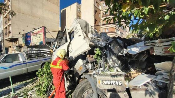 وی با بیان اینکه آتش‌نشانان ظرف مدت زمان چهار دقیقه در محل حاضر شدند، گفت: با حضور آتش‌نشانان در محل مشخص شد که یک دستگاه تریلر ۱۸ چرخ با بار سنگ ساختمانی در حال حرکت در مسیر بوده که ناگهان با چندین دستگاه خودرو که در حال حرکت در مسیر بوده یا پارک کرده بودند برخورد کرده و پس از آن وارد پیاده رو شده و پس از برخورد با تیربرق، درخت و دو ساختمان مسکونی متوقف شده است. بار این کامیون نیز در طول مسیر تخلیه شده بود.