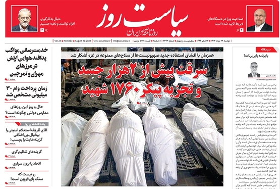 صفحه نخست روزنامه‌های کشور - دوشنبه ۲۹ مرداد ۱۴۰۳
