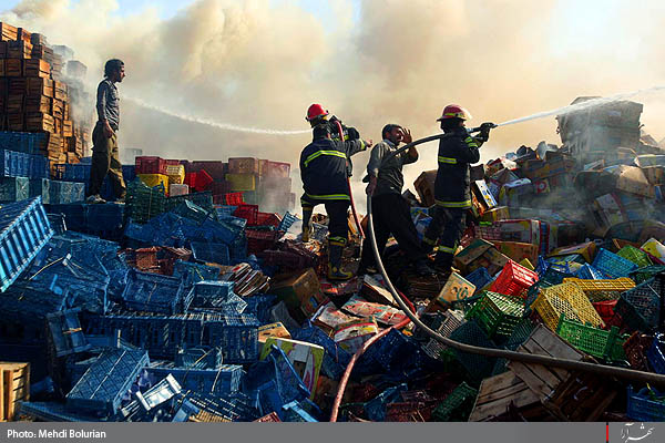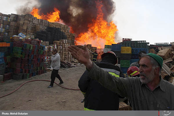 عد از آتش سوزي چند روز پيش در انبارهاي جعبه در بولوار كشاورز؛امروز در همين بولوار،9انبار جعبه ميوه ديگر طعمه حريق شدند و آتش سوزي مهيبي در اين نقطه از شهر به وجود آوردند.