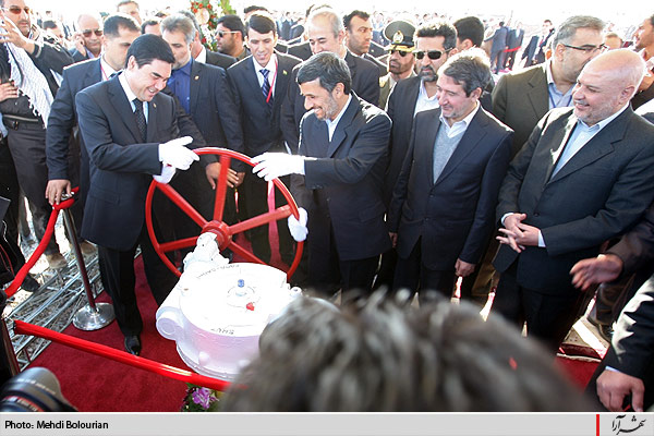 خط دوم انتقال گاز تركمنستان به ايران صبح امروز با حضور "محمود احمدي نژاد" رييس جمهوري اسلامي ايران و "قربانعلي بردي محمد اف" رييس جمهور تركمنستان به طور رسمي افتتاح شد.