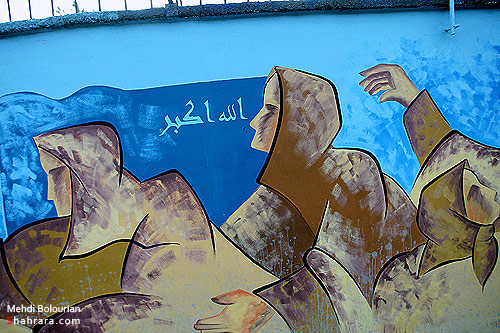 از بزرگترين نقاشي ديواري مشهد به طول 1645 متر در ميدان جمهوري اسلامي مشهد رونمايي شد.