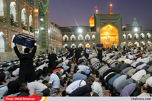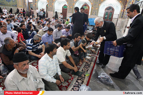 تهیه و توزیع افطار بین نمازگراران در حرم امام رضا(ع)