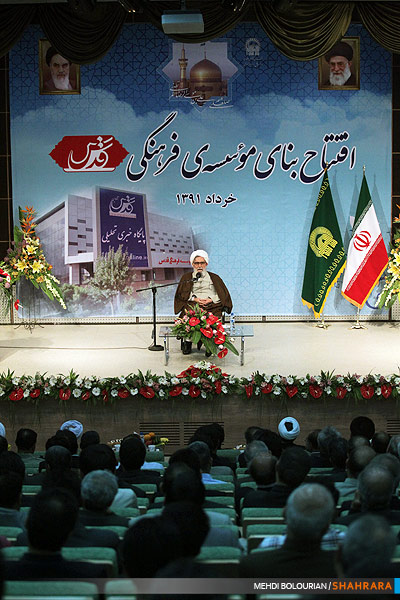 بنای جدید موسسه فرهنگی هنری قدس صبح امروز با حضور آیت الله واعظ طبسی نماینده ولی فقیه و تولیت عظمای استان قدس رضوی افتتاح شد