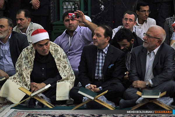 تلاوت قرآن کریم با حضورحضرت آیت الله مکارم شیرازی و استاد احمداحمدنعینع در ایوان مقصوره مسجد گوهرشاد حرم مطهر رضوی برگزار شد.