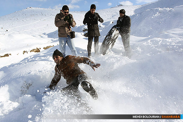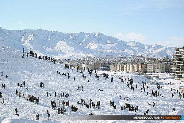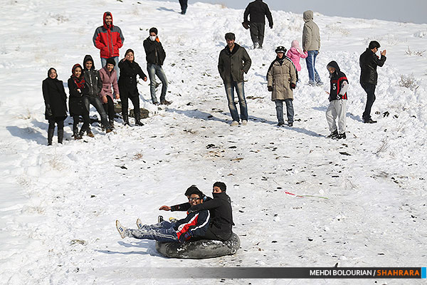 با بارش برف و سفید شدن کوه های اطراف شهرمردم مشهد با حضور در ارتفاعات به بازی وشادی پرداختند.