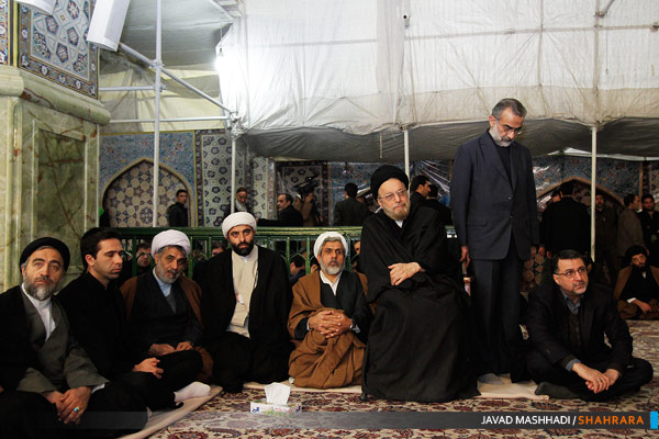مراسم بزرگداشت آیت الله مجتبی تهرانی با حضور ولی فقیه و تولیت عظمای آستان قدس رضوی در رواق امام خمینی حرم مطهر برگزار شد.