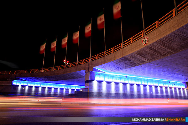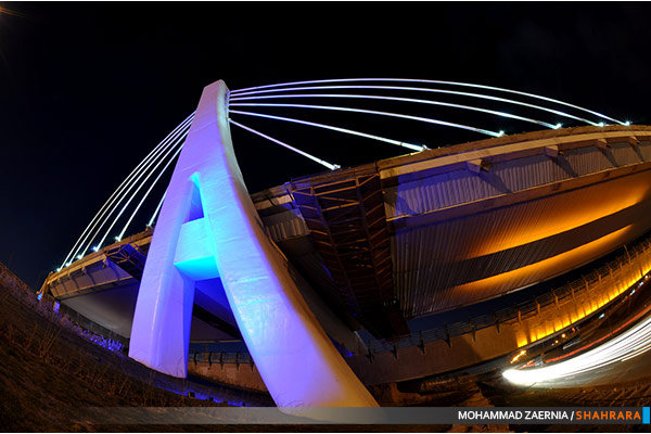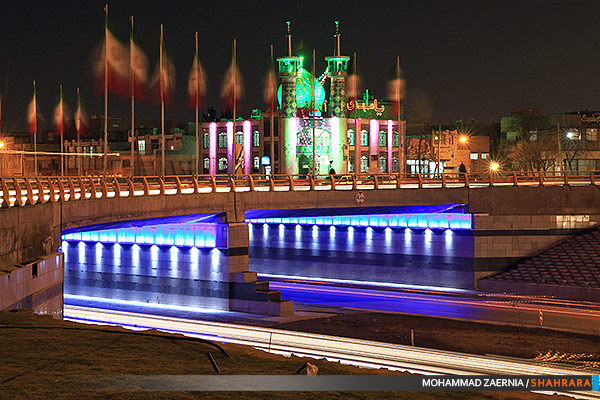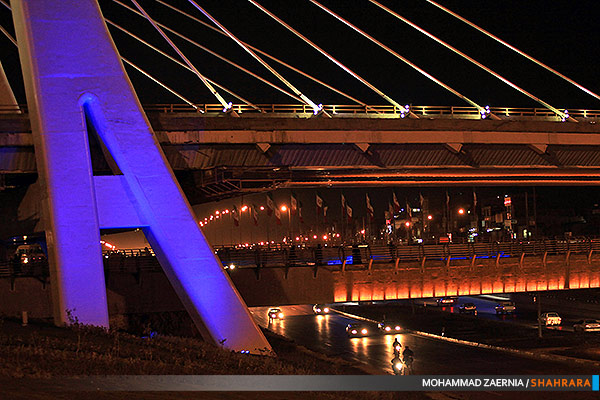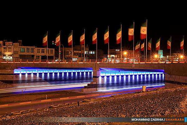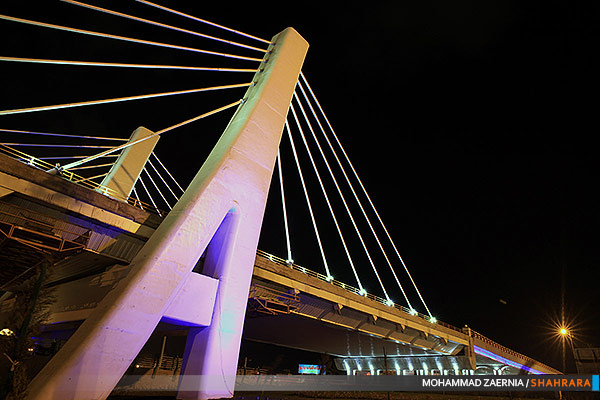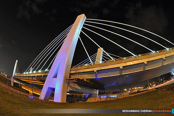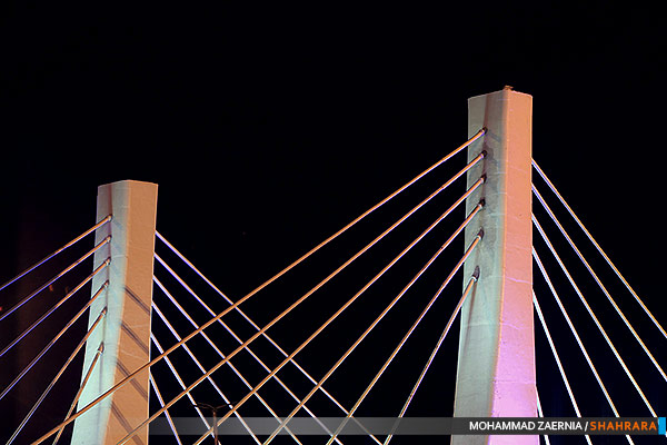 همزمان با دهه مبارک فجر پروژه نورپردازی مدرن ترین پل کابلی جهان در میدان امام حسین(ع) مشهد افتتاح شد.