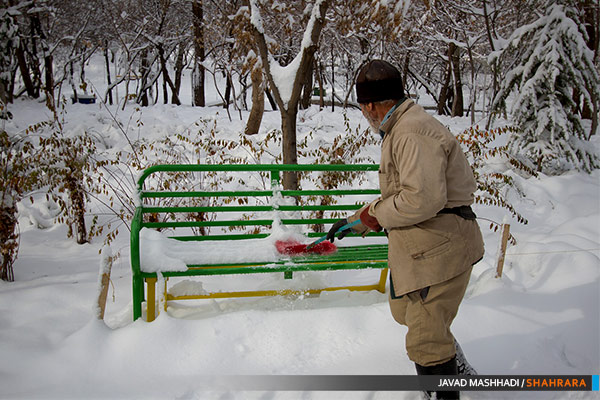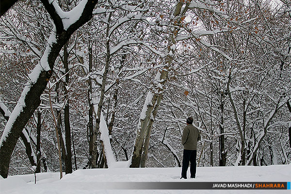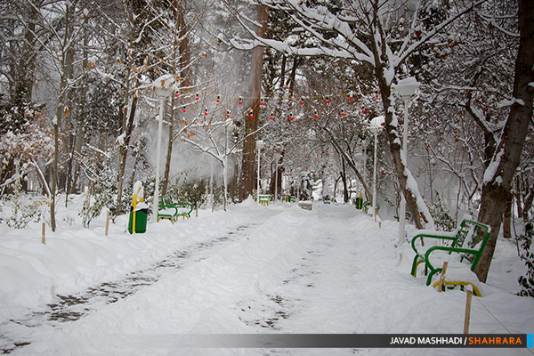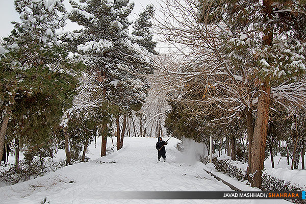 برف روز گذشته مشهد بوستان وکیل آباد را سراسر سفید پوش کرده است.