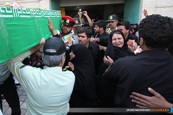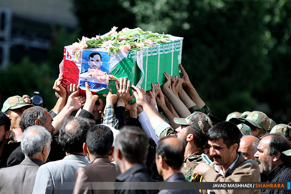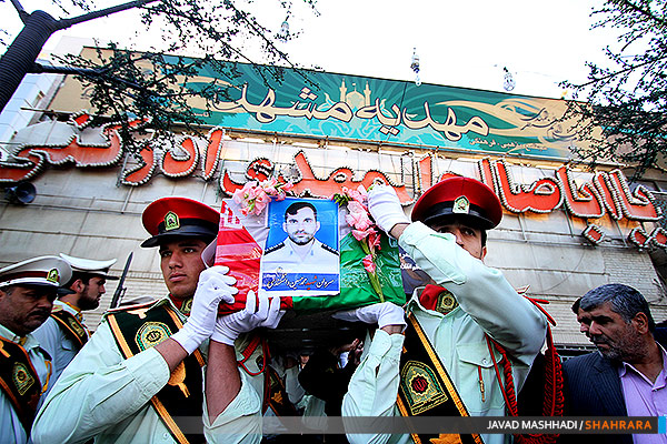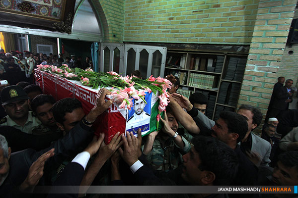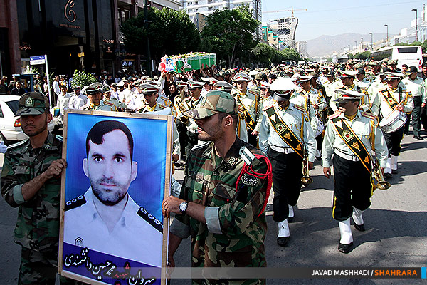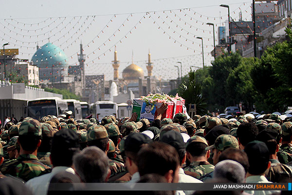 پیکر مطهر شهیدسروان محمدحسین دانشمندی صبح روز گذشته از مقابل مهدیه مشهد بر روی دستان مردم شهیدپرور مشهد و جمعی از مسئولان به سمت حرم مطهر رضوی تشییع شد.