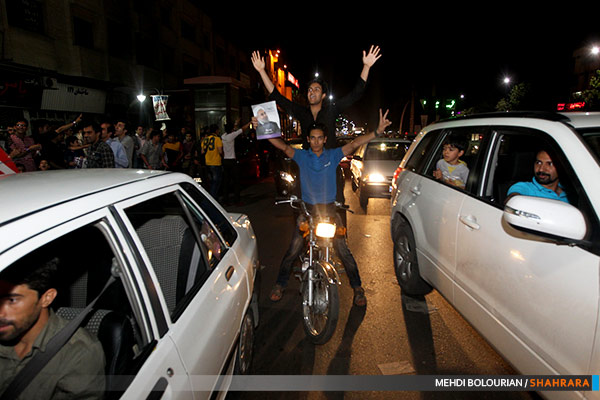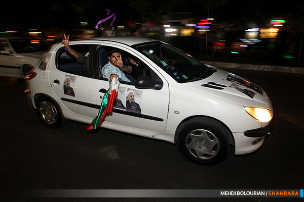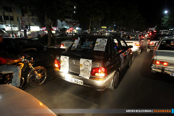 در آستانه برگزاری انتخابات ریاست جمهوری حامیان کاندیداها در خیابان های مشهد تجمع کردند.