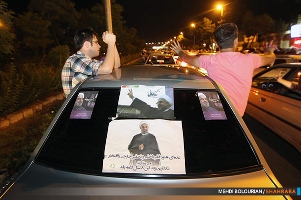 هواداران حسن روحانی پس از پیروزی وی در انتخابات ریاست جمهوری با حضور در خیابان ها به شادی پرداختند.