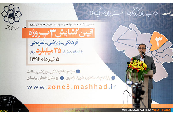 آئین گشایش سه پروژه فرهنگی ، ورزشی و تفریحی در منطقه سه شهرداری مشهد صبح امروز با حضور جمعی از مسئولین شهری برگزار شد.