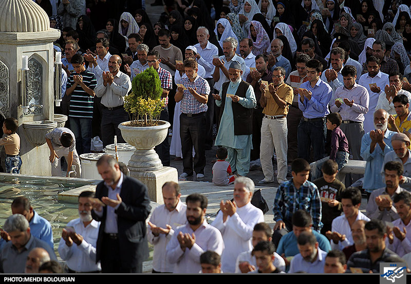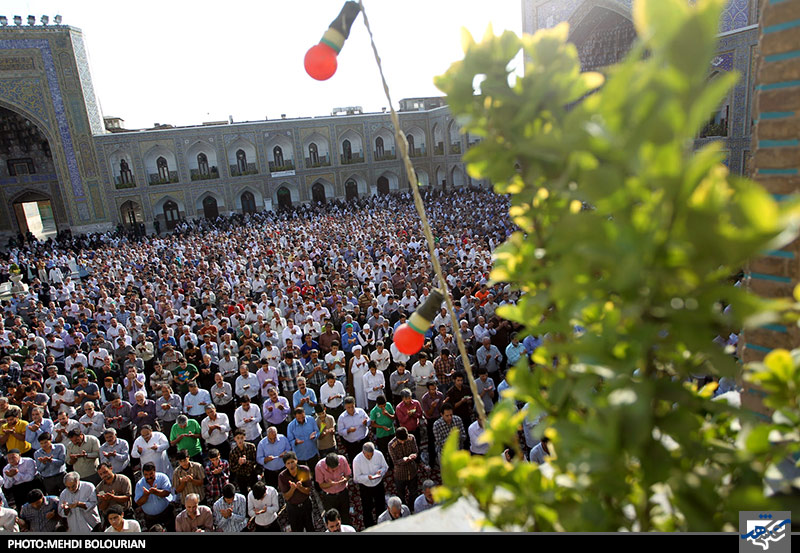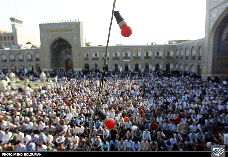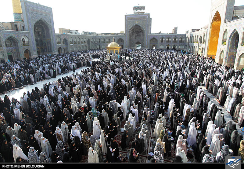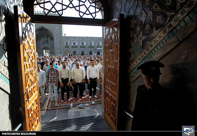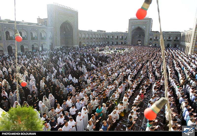 نماز عید سعید فطر صبح امروز جمعه با حضور اقشار مختلف مردم مشهد در صحن های مختلف حرم مطهر امام علی ابن موسی الرضا اقامه شد.