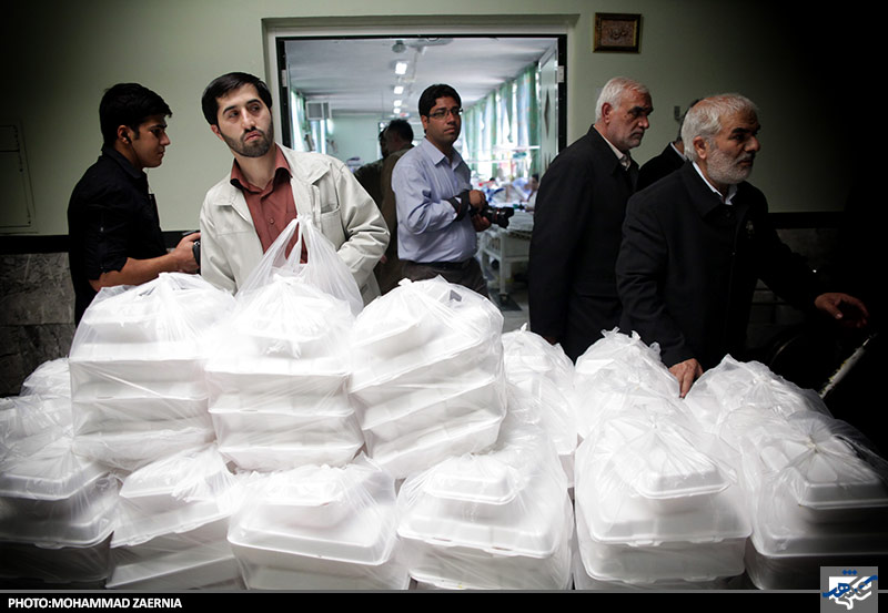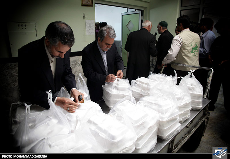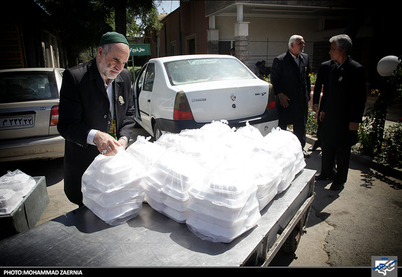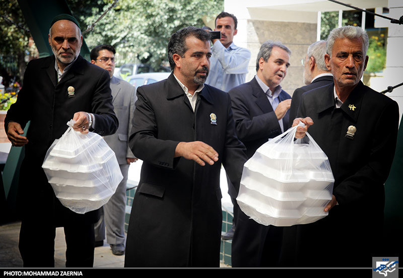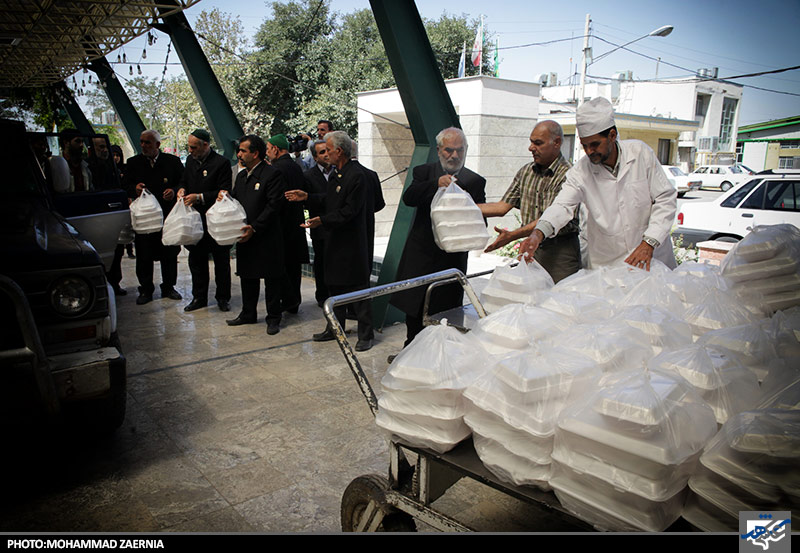 توزیع غذای متبرک توسط خادمان رضوی