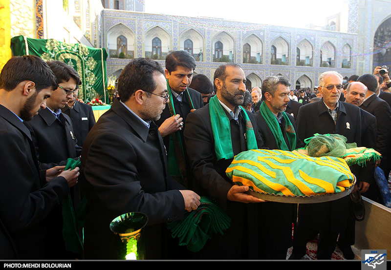 همزمان با میلاد امام علی ابن موسی الرضا(ع) آیین تعویض پرچم گنبد حرم رضوی صبح امروز برگزار شد.