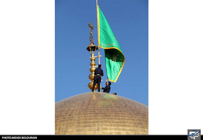 تعویض پرچم گنبد حرم رضوی