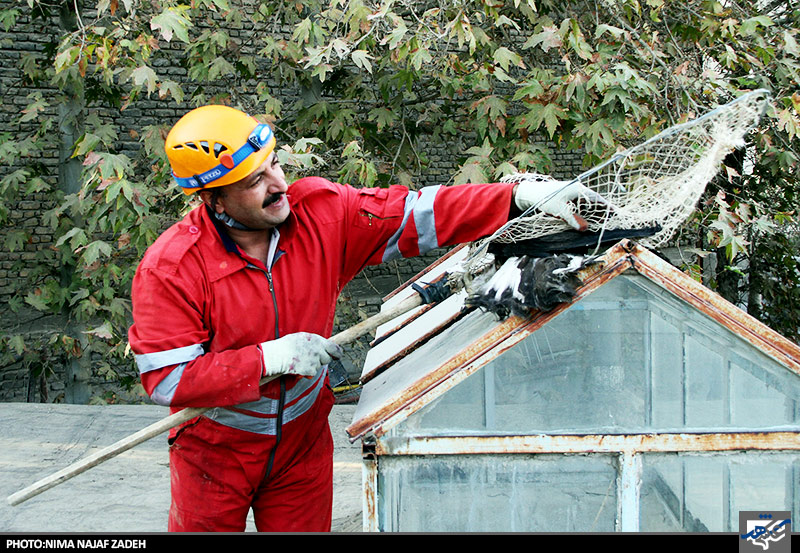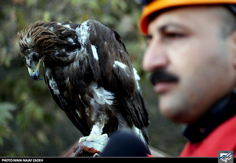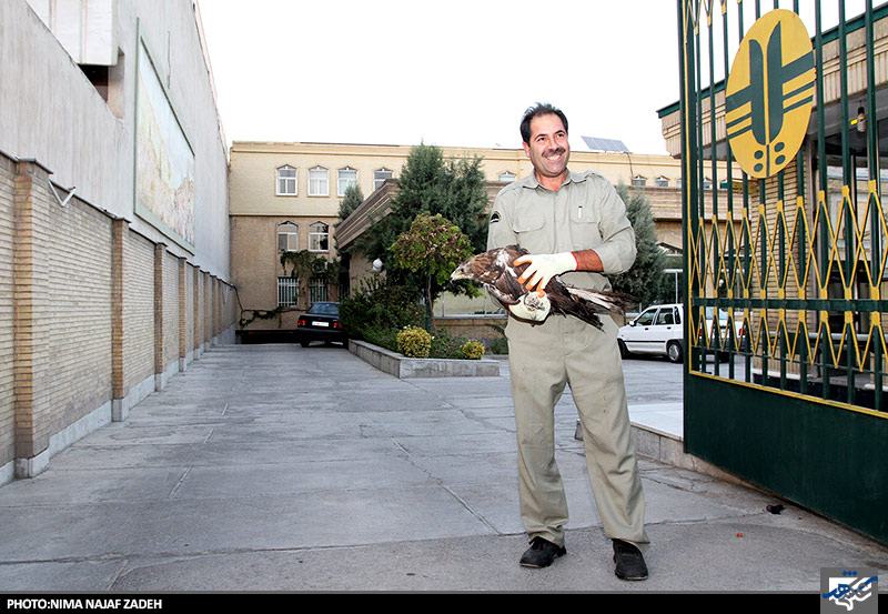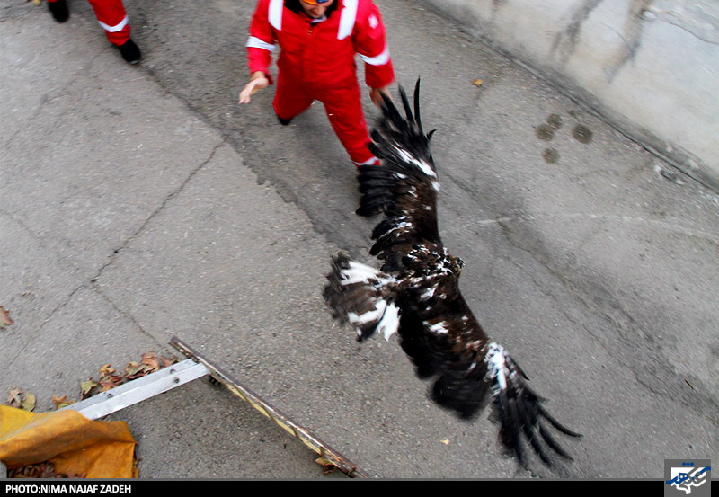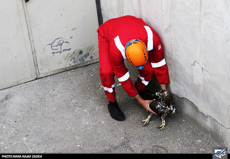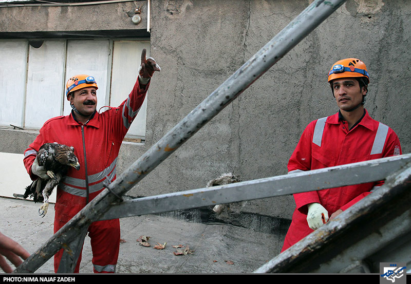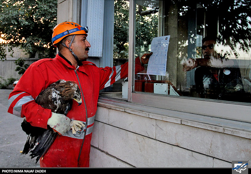 عقابی که در خانه ای گیر افتاده بود توسط نیروهای آتش نشانی نجات یافت وبه مامورین سازمان حفاظت از محیط زیست تحویل شد.