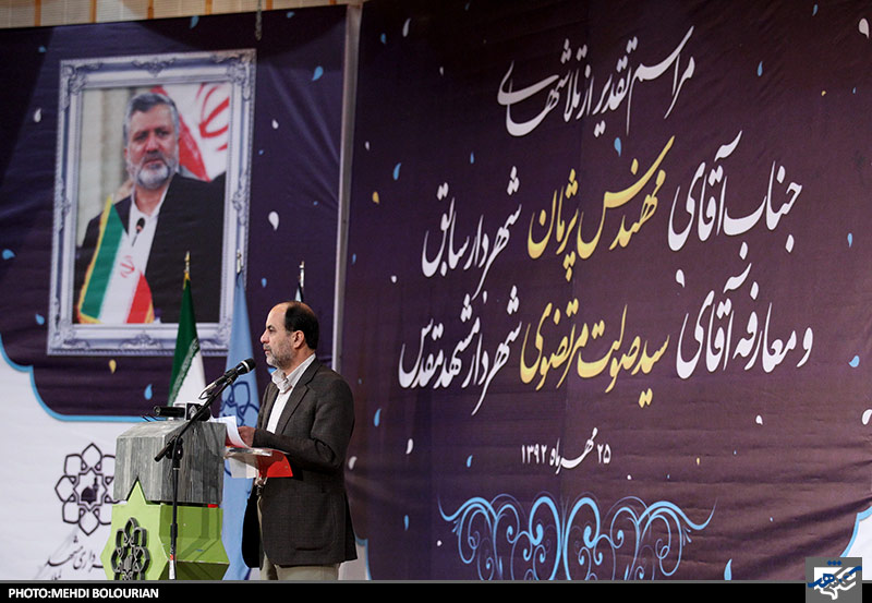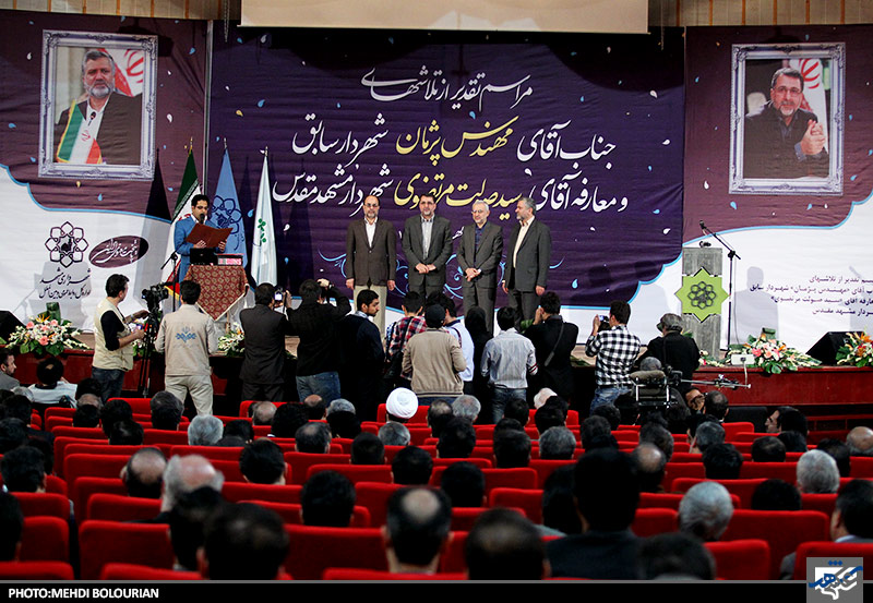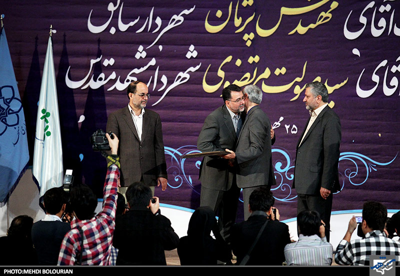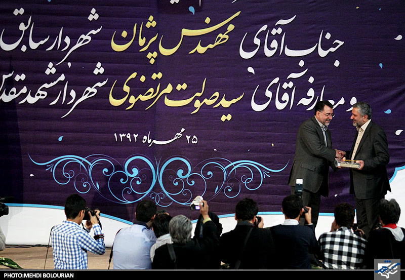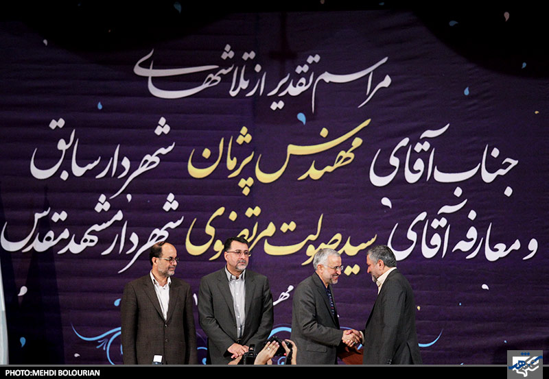 مراسم تودیع سید محمد پژمان و معارفه سید صولت مرتضوی شهرداران سابق و جدید شهرمشهد صبح امروز در مرکز همایش های صدا و سیما در مشهد برگزار شد.