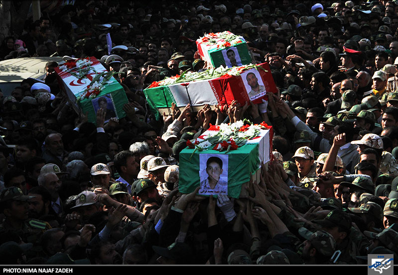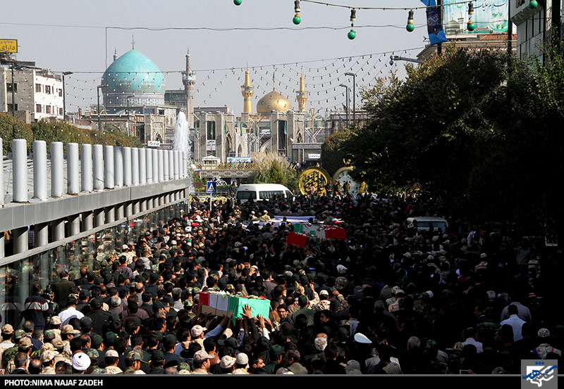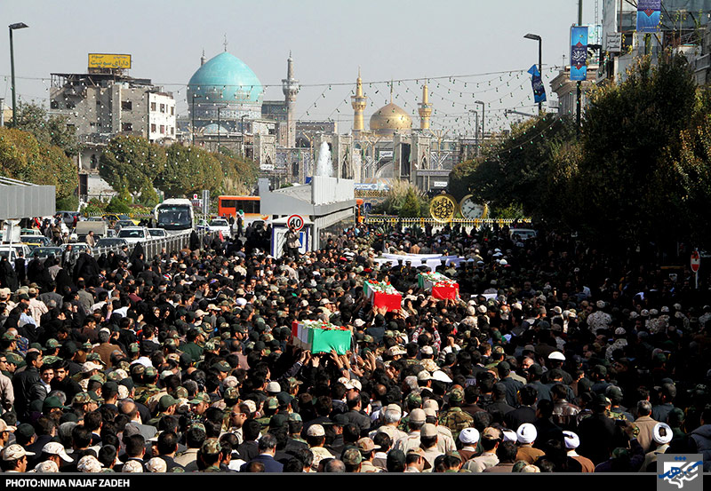 پیکر شهدای حادثه سراوان صبح امروز از مهدیه مشهد تا حرم رضوی تشییع شد.