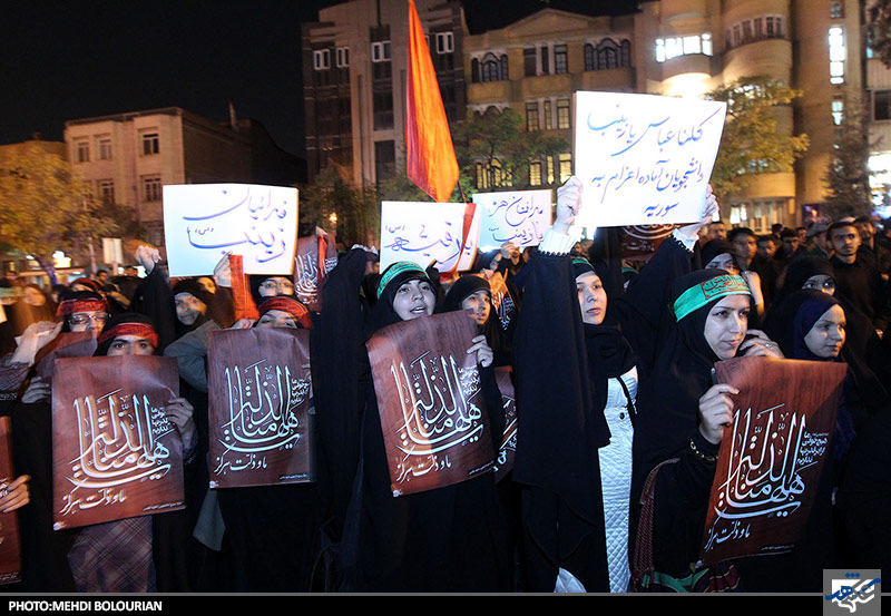 تجمع مدافعان حرم حضرت زینب (س) در محکومیت حمله خمپاره ای به زینبیه و اعلام آمادگی جهت اعزام به سوریه در مقابل دفتر نمایندگی سازمان ملل در مشهد برگزار شد.