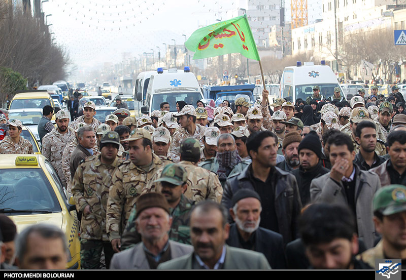 تشییع پیکر شهید محمود سرابقوچانی جانباز 70 درصد دفاع مقدس از مهدیه مشهد