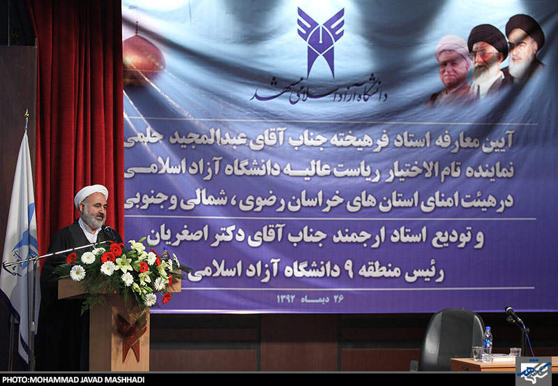 آیین معارفه عبداالمجید حلمی نماینده تام الاختیار ریاست عالیه دانشگاه آزاد اسلامی در هیات امنای استان های خراسان رضوی ، شمالی و جنوبی.
