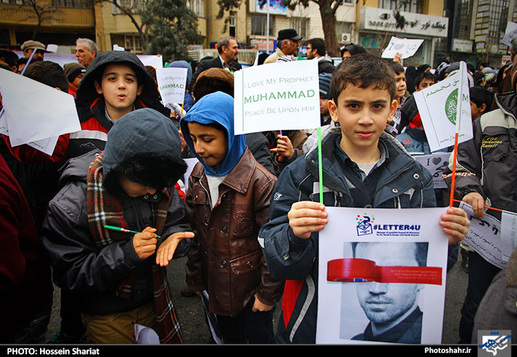 جمعی از کودکان مشهدی صبح امروز با برگزاری تجمع اعتراض آمیز مقابل دفتر سازمان ملل در مشهد نفرت و انزجار خود را نسبت به هتک حرمت نبی مکرم اسلام حضرت محمد (ص) ابراز داشتند.