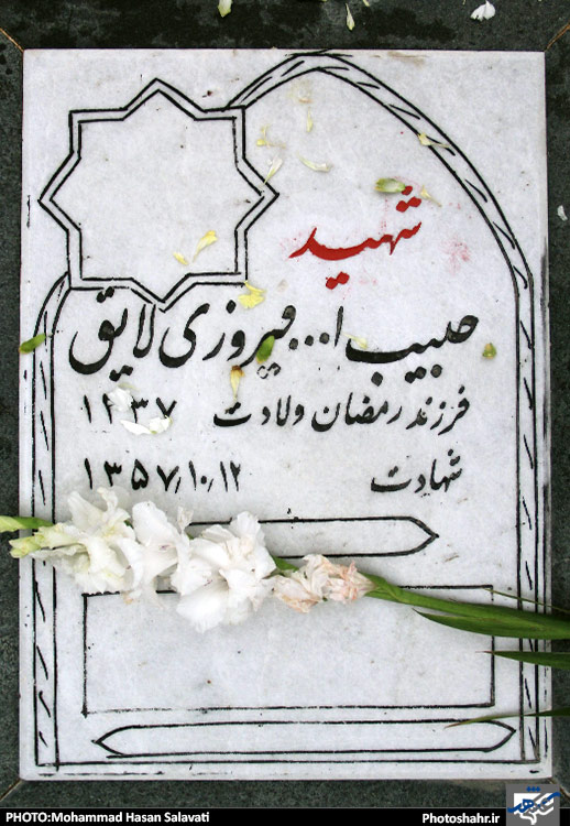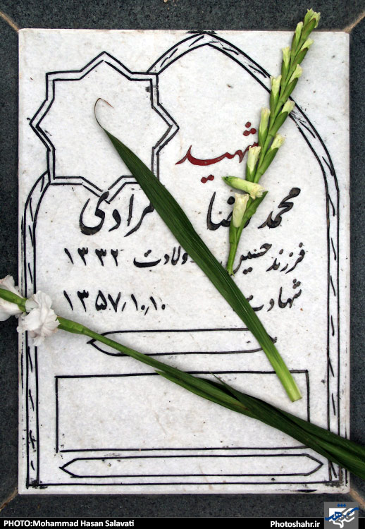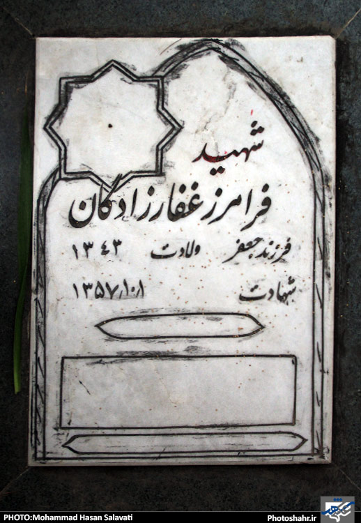سنگ قبر مزار شهدای انقلاب که در سال 57 توسط رژیم پهلوی در درگیری ها و تظاهرات های خیابانی به شهادت رسیده اند .