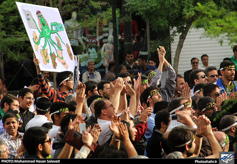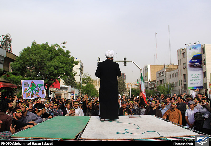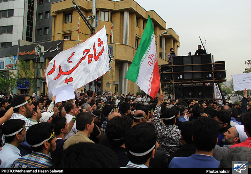مردم مشهد عصر امروز ( پنجشنبه 27 فروردین ) برای پنجمین بار در هفته گذشته فریاد اعتراض خود را نسبت به جنایات آل سعود در مقابل کنسولگری آن کشور سر دادند.