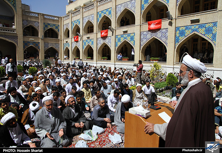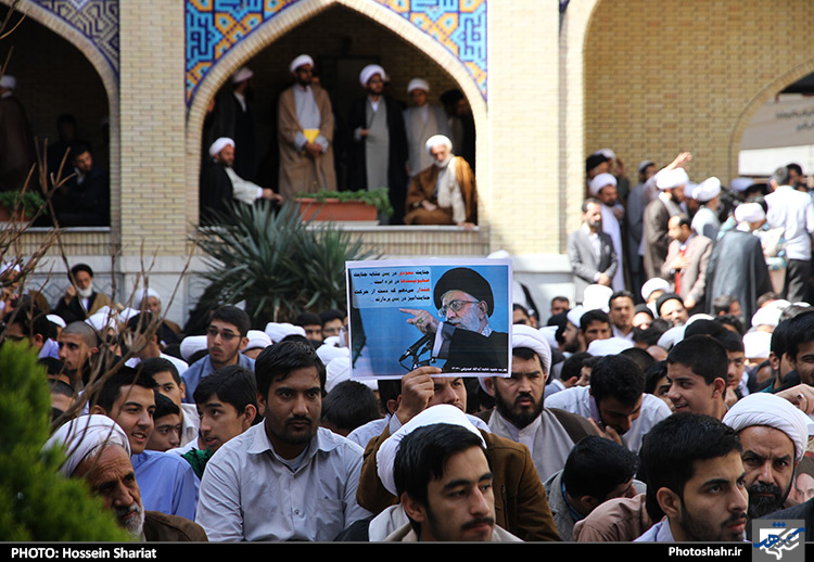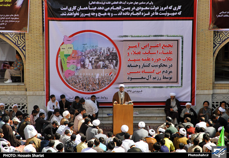 تجمع اعتراض آمیز علما و طلاب حوزه علمیه مشهد در محکومیت جنایات آل سعود
