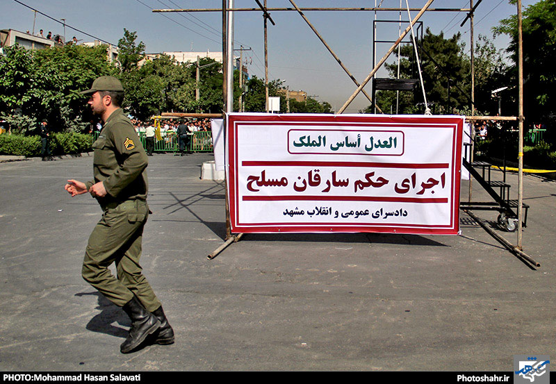 جرم مجرمان این پرونده شامل سرقت مسلحانه، آدمربایی و قتل بوده و براساس رأی دادگاه محارب شناخته شدند و باید در ملاعام حکم اجرا میشد. دادستان عمومی و انقلاب مشهد با بیان اینکه وظیفه دادستانی مشهد اجرای عادلانه حکم در ارتباط با جرائم مجرمان این پرونده بوده است، گفت: بهدلیل حساسیت پرونده بررسی و پیگیری پرونده مجرمان چندین سال طول کشید چرا که مردم از پلیس و دستگاه قضا خواستار حفظ جان و امنیت جامعه هستند.صادقی تصریح کرد: اجرای برخی احکام در ملاء عام سبب عبرت سایر افراد میشود.حجت نیکمرام، فرمانده انتظامی مشهد نیز اظهار داشت: این افراد که در قالب یک باند سرقت از سال 84 فعالیت خود را آغاز کردند و در سال 90 با تلاش پلیس دستگیر و تحویل مراجع قضایی شدند.وی تصریح کرد: شناسایی این باند سرقت طی یک عملیات هماهنگ با سایر دستگاههای نظامی صورت گرفت.فرمانده انتظامی مشهد خاطرنشان کرد: این مجرمان علاوه بر سرقت مسلحانه اقدام به گروگانگیری، قتل نیز در پرونده این مجرمان مشهود است.