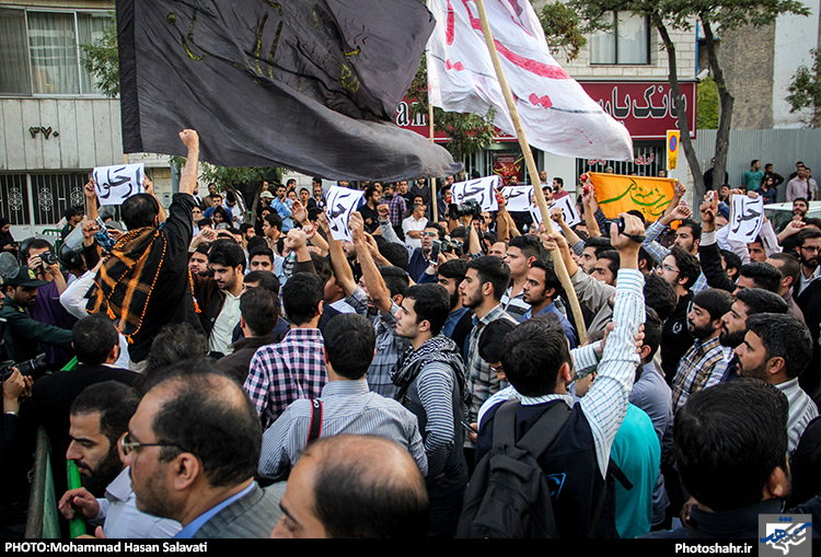 تجمع اعتراض آمیز جمعی از مردم مشهد در مقابل کنسولگری عربستان