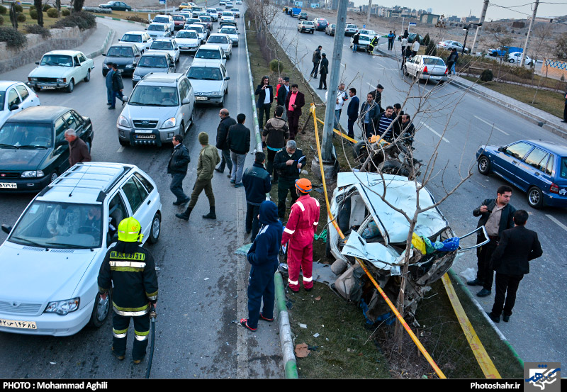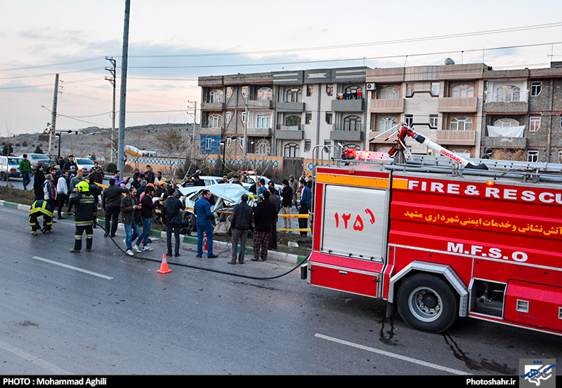ساعت 16 امروز بر اثر برخورد یک دستگاه خودروی پراید با ستون برق وسط بلوار فکوری مشهد، خودرو از وسط دو نیم شد و راننده جوان آن به طرز معجزهآسایی نجات یافت.
