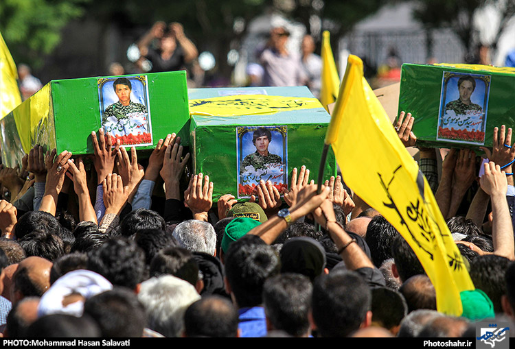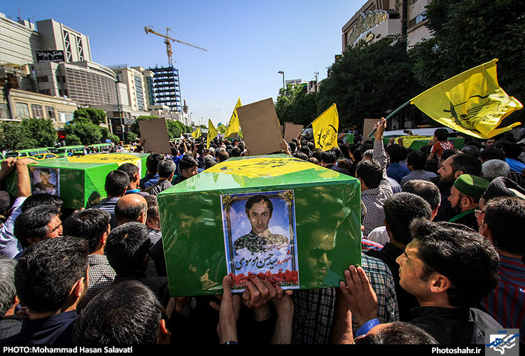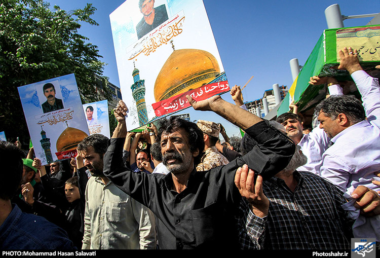 پیکر مطهر 8 شهید مدافع حرم صبح امروز با بر دستان مردم شهید پرور مشهد از مقابل مهدیه تا حرم رضوی تشییع و سپس در گلزار شهدای بهشت رضا (علیه السلام) به خاک سپرده شد. عکاس:محمد حسن صلواتی / شهرآرا