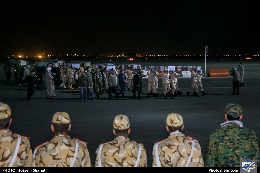 پیکر مطهر پنج شهید تازه تفحص شده دوران دفاع مقدس و پنج شهید مدافع حرم اهل بیت (ع) شامگاه سه شنبه 25 دی ماه وارد فرودگاه هاشمی نژاد مشهد شد و مورد استقبال رسمی مسئولان استانی و خانواده های این شهدا قرار گرفت.